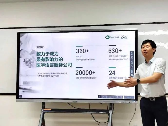 4月17日上午,由高级翻译学院主办的医学语言服务企业建设与管理交流会在知识城校区进德楼502教室举行。北京雅信诚医学信息科技有限公司总经理杨瑞锋与高级翻译学院研究生共同探讨新时代医学语言服务企业建设与管理、市场环境变化与趋势、人工智能技术发展与应用等前沿话题。交流会由高级翻译学院医学语言服务研究中心负责人陈庆主持。