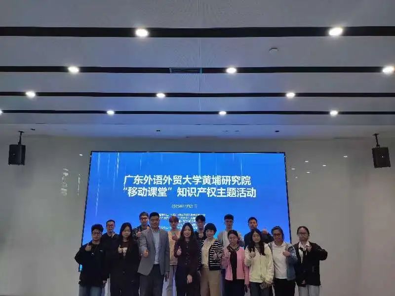 11月21日下午,在中新广州知识城开发建设办公室的指导下,由广东外语外贸大学黄埔研究院、广东外语外贸大学法学院、广州开发区知识城国际知识产权促进会(简称“国际IP促进会”)主办的广东外语外贸大学黄埔研究院“移动课堂”知识产权主题活动顺利举办,活动获得中国汽车知识产权运用促进中心的支持。我校法学院对知识产权有浓重兴趣的研究生一行14人,在辅导员刘运宇老师带队下,走进中新广州知识城国际知识产权服务大厅(简称“国际IP服务大厅”),进行参观、交流和学习。