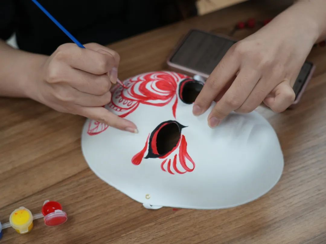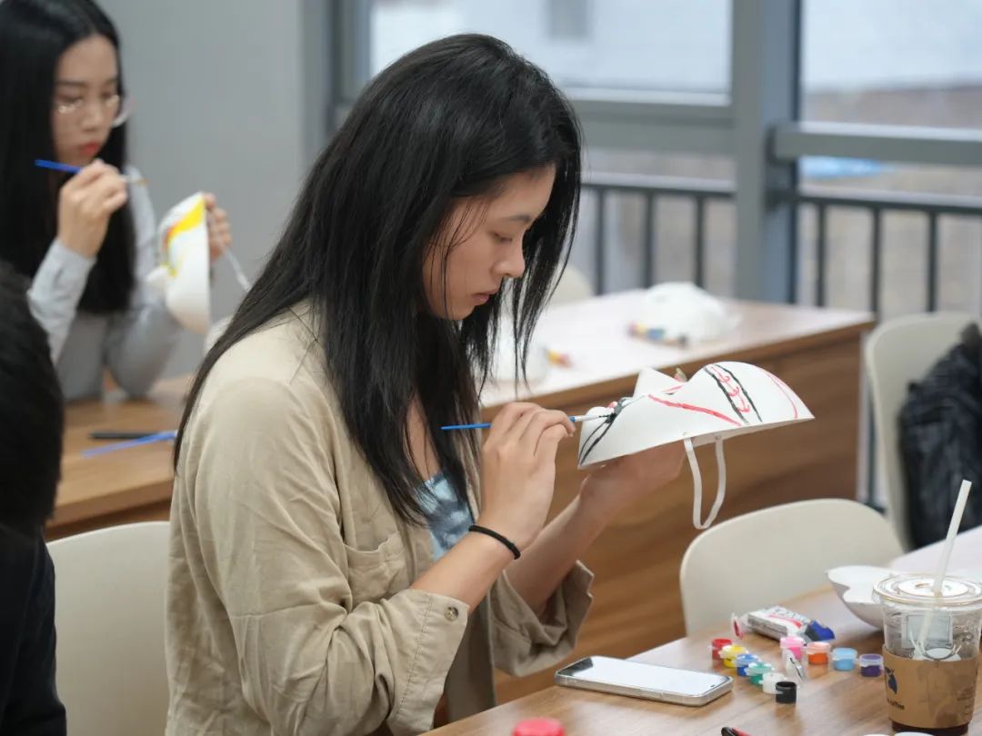 随后,活动进入手绘脸谱环节。同学们在工作人员的悉心指导下,手持画笔,开始绘制属于自己的木偶戏脸谱。他们或细心描摹,或大胆创新,用自己的双手将传统戏曲文化与现代审美相结合,创作出了一幅幅特色鲜明、别具一格的脸谱。