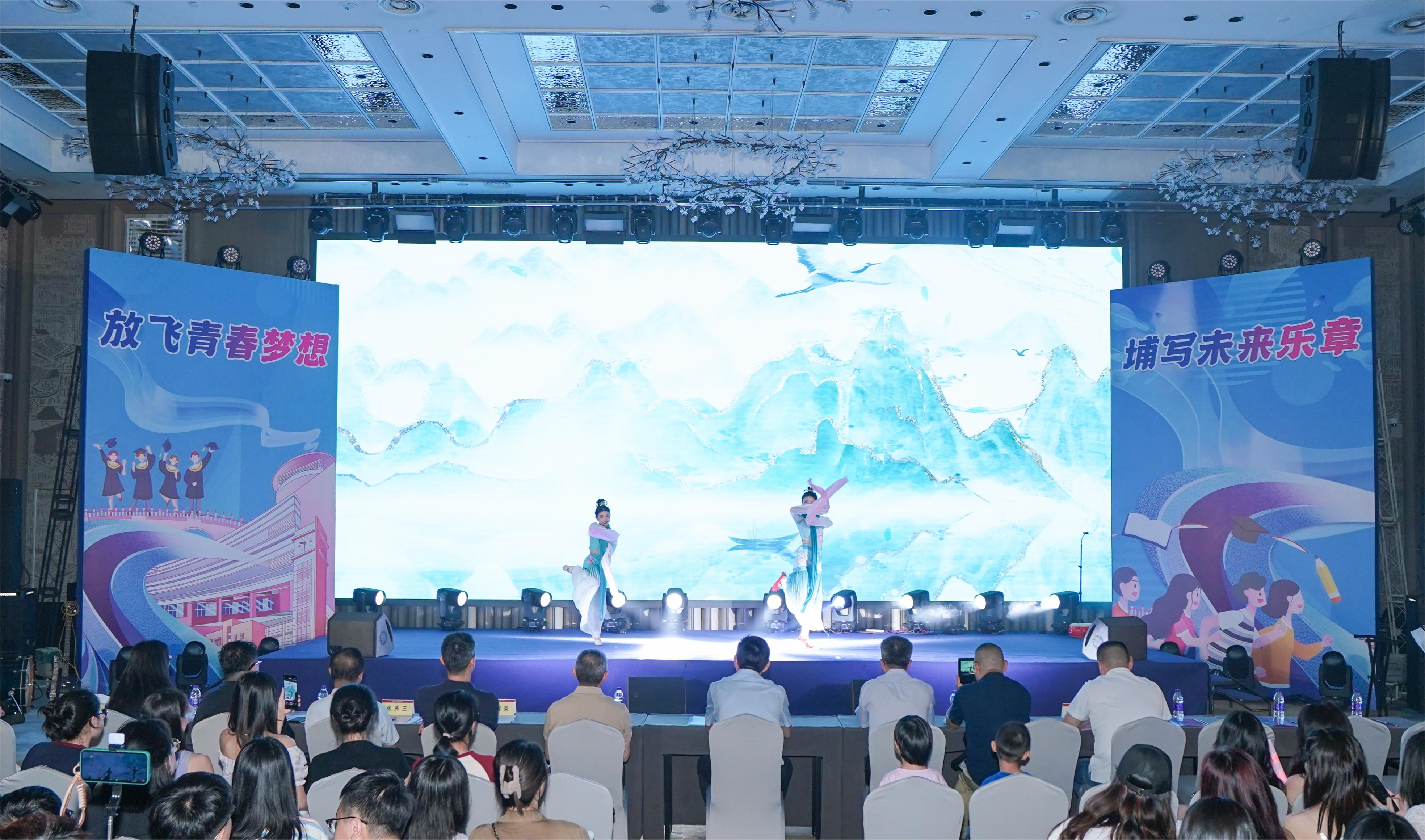 6月23日晚,为欢送知识城校区2024届毕业生奔赴前程,放飞梦想,一场以“放飞青春梦想·埔写未来乐章”为主题的毕业晚会在广州开芯国际大酒店三楼典卓宴会厅隆重举行。600余名师生和家长欢聚一堂,共同见证这一温馨而庄重的时刻,为毕业生们送上毕业祝福。
