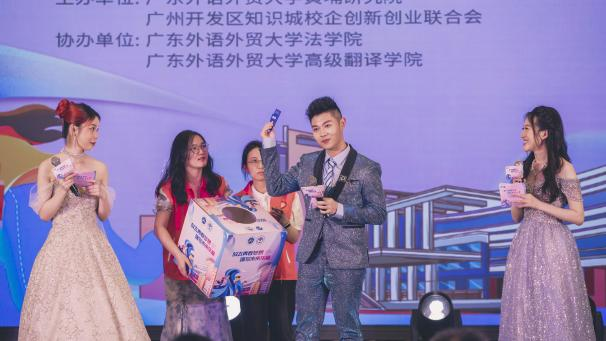 本次晚会在中新广州知识城开发建设办公室的指导下,由广东外语外贸大学黄埔研究院和广州开发区知识城校企创新创业联合会联合主办,由广东外语外贸大学法学院、高级翻译学院协办。校党委副书记唐锐,知识城校区管委会(筹)办公室主任汤程荣,法学院党委书记杨敏生,高级翻译学院党委书记李和民,黄埔研究生院副院长张秀三,高级翻译学院教授褚东伟以及兄弟学校代表、广州开发区知识城校企创新创业联合会代表等领导嘉宾莅临现场观看。