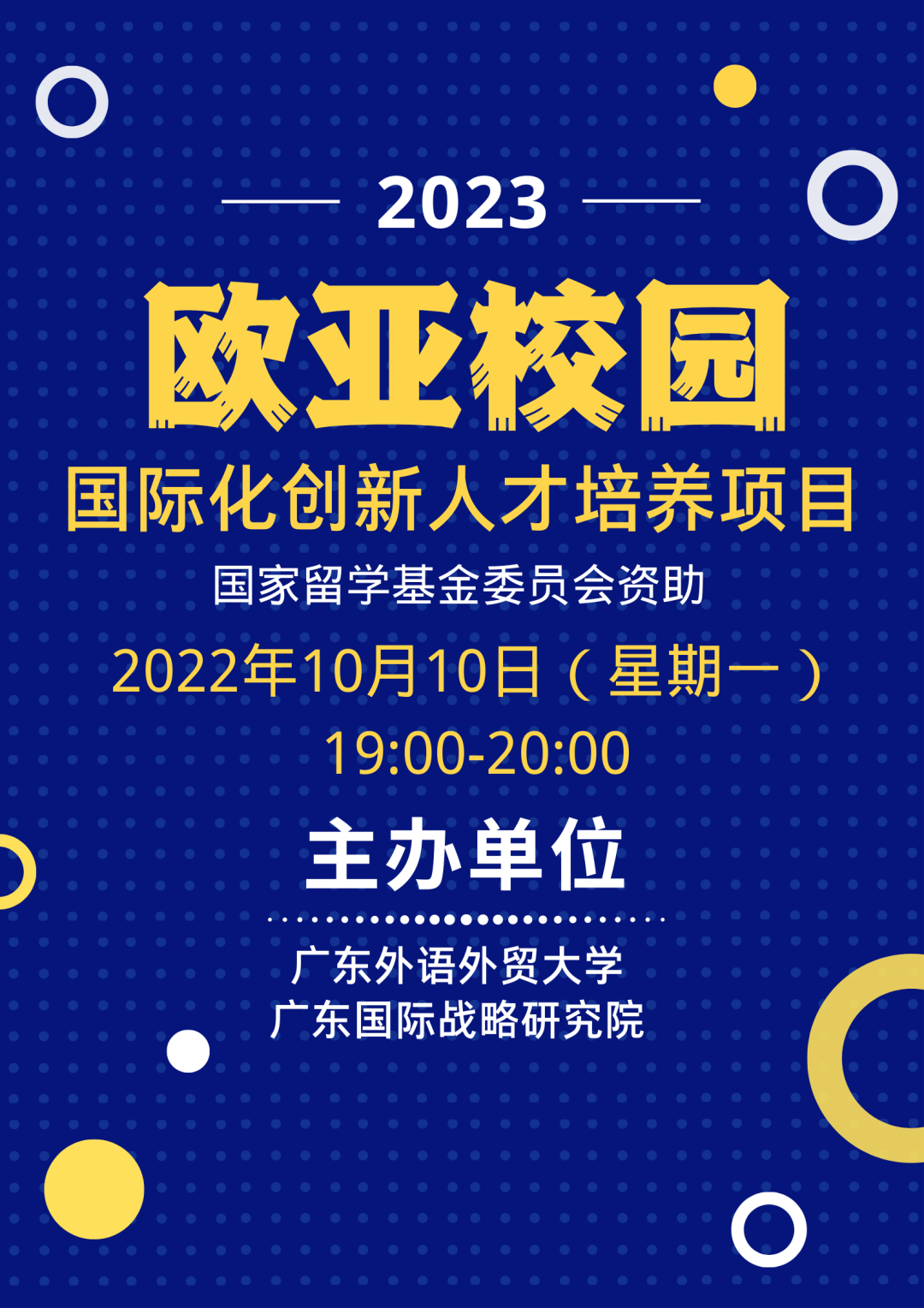 届时将介绍“欧亚校园”国际化创新人才培养项目背景、合作院校、选拔与培养过程、考核方式等。