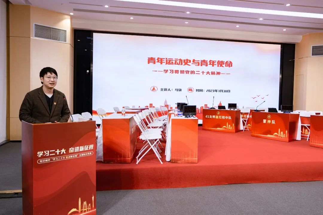 大赛自启动以来,受到园区高校学子高度关注,同学们参与热情高涨,有来自不同高校一百多名学生报名参赛。初赛通过笔试形式举行,考察了青年学子丰富的党团知识储备和过硬的理论功底,共有六支队伍晋级决赛。决赛聚焦党的二十大精神、党章党规等相关内容,设置必答题、抢答题、风险题三个环节。在竞赛现场,六支代表队、三十名选手,精神抖擞依序列坐,全神贯注投入比赛。一百余名学生在现场观看了比赛。