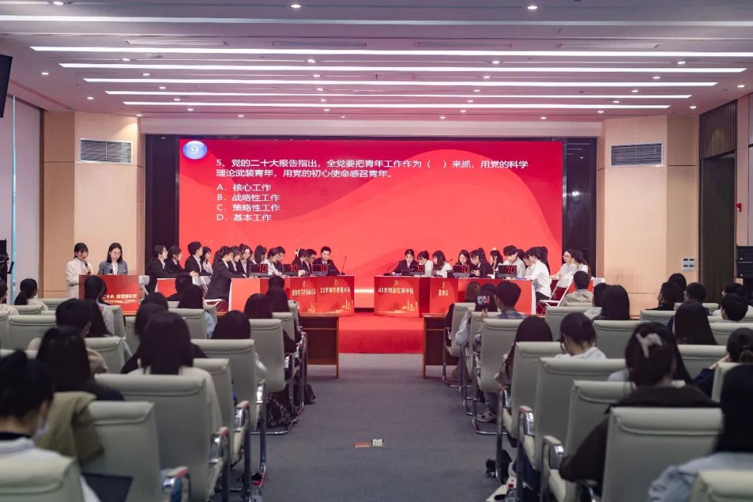 在“锋芒初露”必答题环节,选手们信心十足,团结协作,充分调动知识储备,对答如流,上演了一场精彩纷呈的知识较量。在“奋勇争先”抢答题环节,选手们斗智斗勇,踊跃抢答,激烈比拼,体现了扎实的党团知识储备和快速的临场反应能力。在“突出重围”风险题环节,选手们沉着冷静,你追我赶,充分展现了拼搏奋进的精神面貌,奉献了一场精彩绝伦、氛围热烈的对决盛宴,赢得了现场观众的阵阵掌声。