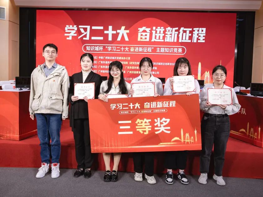 3月30日下午,知识城杯“学习二十大 奋进新征程”主题知识竞赛决赛在海丝知识中心落下帷幕。此次大赛在中新广州知识城开发建设办公室的指导下,由广东外语外贸大学黄埔研究院、广州开发区知识城校企创新创业联合会联合主办,由广东外语外贸大学法学院、高级翻译学院协办,得到广州智科投资开发有限公司和广州开投教育投资发展有限公司的大力支持。