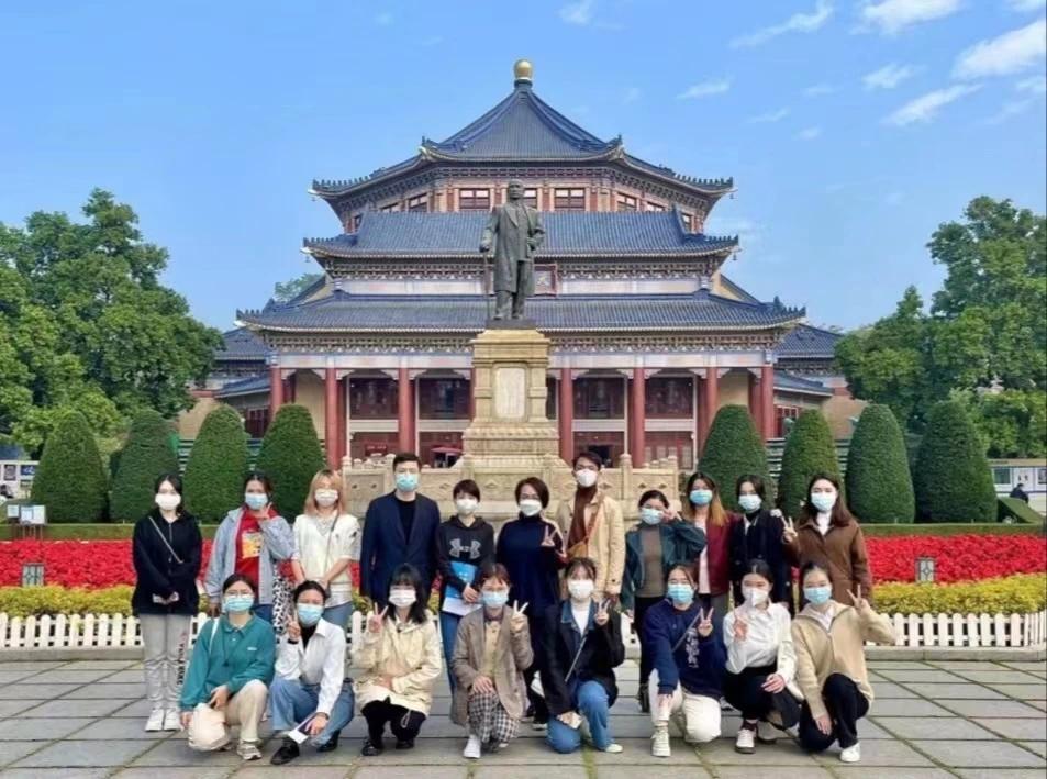 苏皖信(二排右五)带领学生进行旅游泰语实地讲解