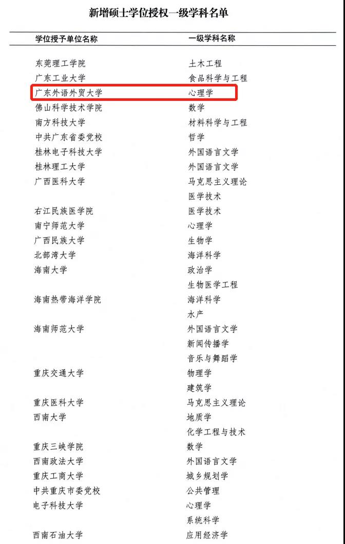 日前,国务院学位委员会正式下发了《国务院学位委员会关于下达2020年审核增列的博士、硕士学位授权点名单的通知》(学位〔2021〕14号)。我校获批新增法学一级学科博士点,心理学一级学科硕士点,应用统计、税务、审计、教育、公共管理、艺术等6个专业学位硕士点,学位点建设再上新台阶。至此,我校共有3个一级学科博士点、13个一级学科硕士点、17个专业学位硕士点,形成了学科门类更加齐全、层次更加清晰、体系更加优化的学位授权点新格局。